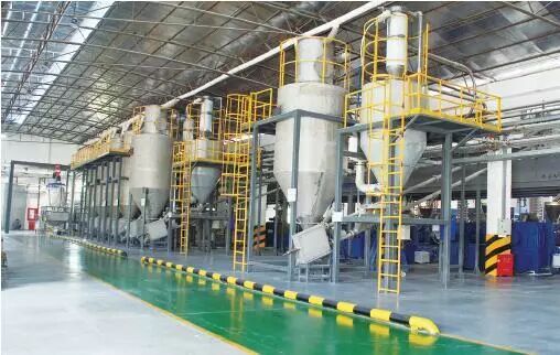 另外,在集中供料系统中的原料混合工序中,为了保证PVC、钙粉、配方料的混合质量和混合效率,一般希望加入一定比例的粒料一起