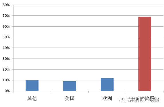1995年,全球ABS树脂总产能仅420万吨/年,2005年达到747.6 万吨/年,1995-2005年全球ABS树脂产能增速为5.94%。2016年全球ABS总生产能力已达1189.1万吨/年左右。2005-2016年全球ABS产能增速达4.66%,其中亚太地区产能占全球的68%左右,而中国产能占亚太地区之首。