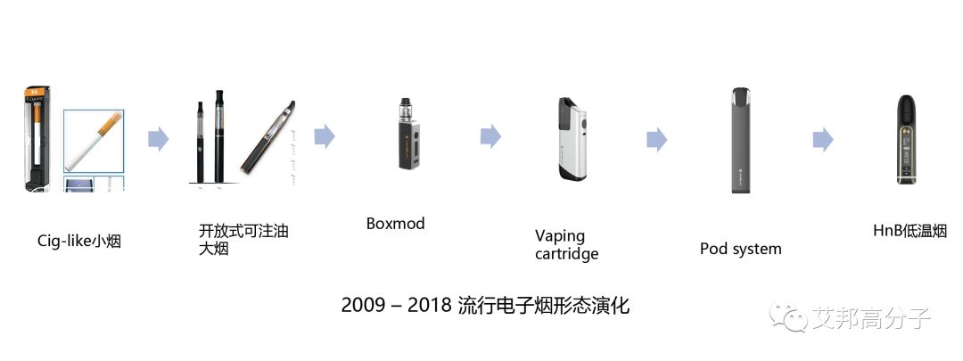 电子烟又名虚拟香烟、电子雾化器,它有着与香烟一样的外观、与香烟近似的味道,甚至比一般香烟的口味要多出很多,也像香烟一样能吸出烟、吸出味道跟感觉来。主要是用于戒烟和替代香烟。电子烟主要分为小烟、大烟及低温干烧型(加热不燃烧)电子烟。小烟及大油均为蒸发烟雾型,小烟的市场在广大烟民,大烟的市场在电子烟玩家或爱好者。小烟的代表是JUUL,加热不燃烧电子烟的代表是菲利普莫里斯国际推出的IQOS。