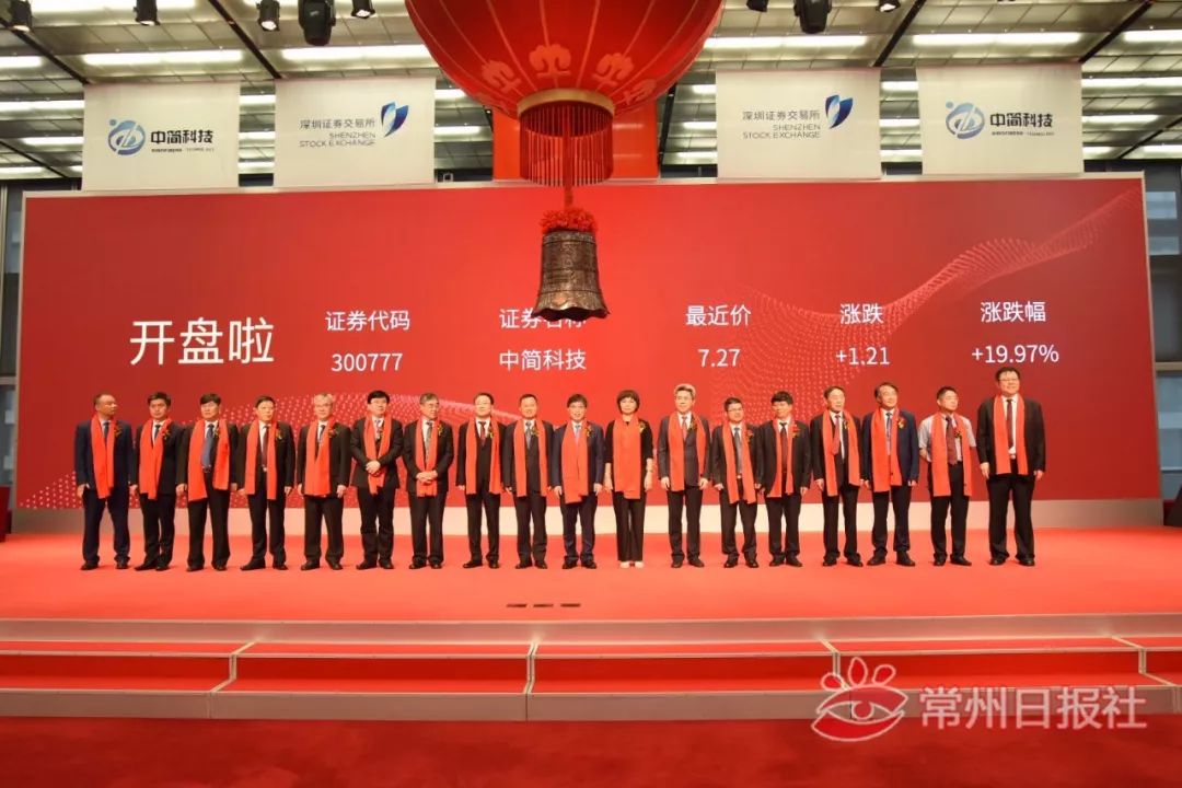 5月16日,常州高新区企业中简科技股份有限公司在深圳证券交易所敲响上市钟声。股票简称:中简科技,股票代码:300777。市、区领导蔡骏、梁一波、乔俊杰、盛晓东、金立卫参加上市仪式。