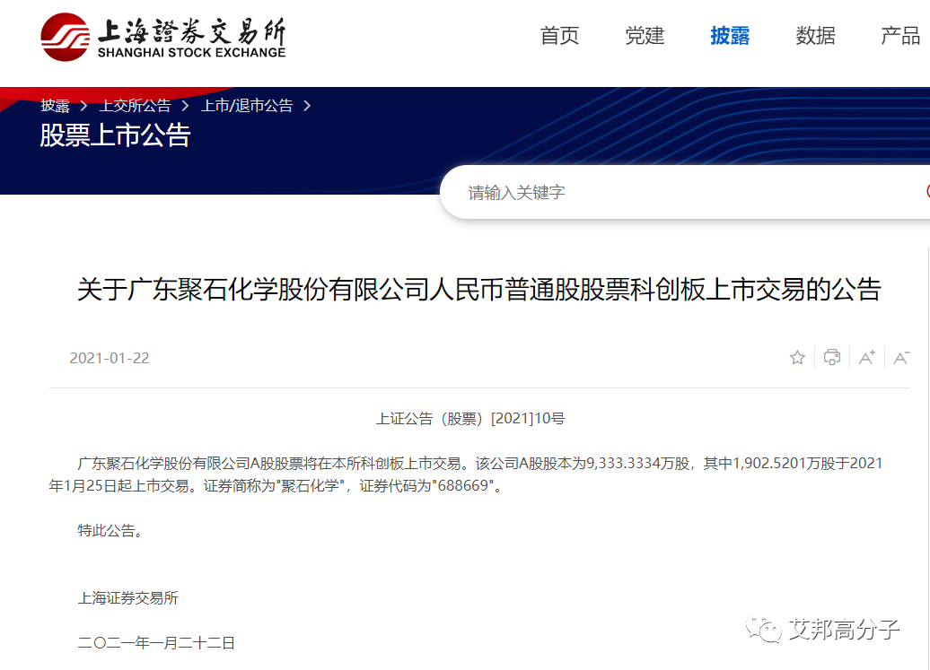 聚石化学(688669)在上交所科创板正式上市 - 艾邦高分子